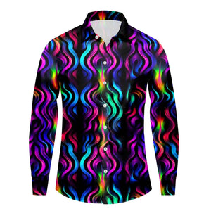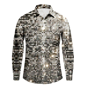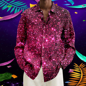 Men's Fashion Casual Plus Size Loose Carnival Digital Print Lapel Long Sleeve Shirt