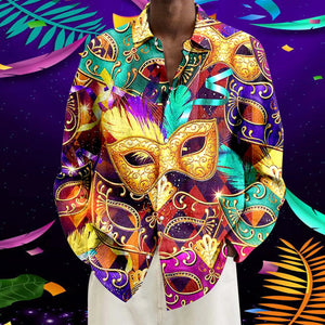 New Fashion Men's Mardi Gras Shirt Graphic Long Sleeve 3d Digital Print Lapel Carnival Vintage Shirt Party Blouse Plus Size
