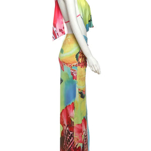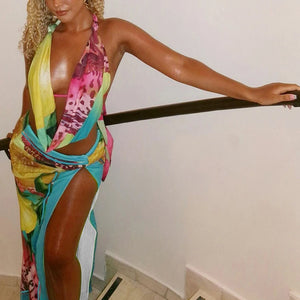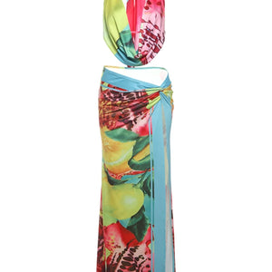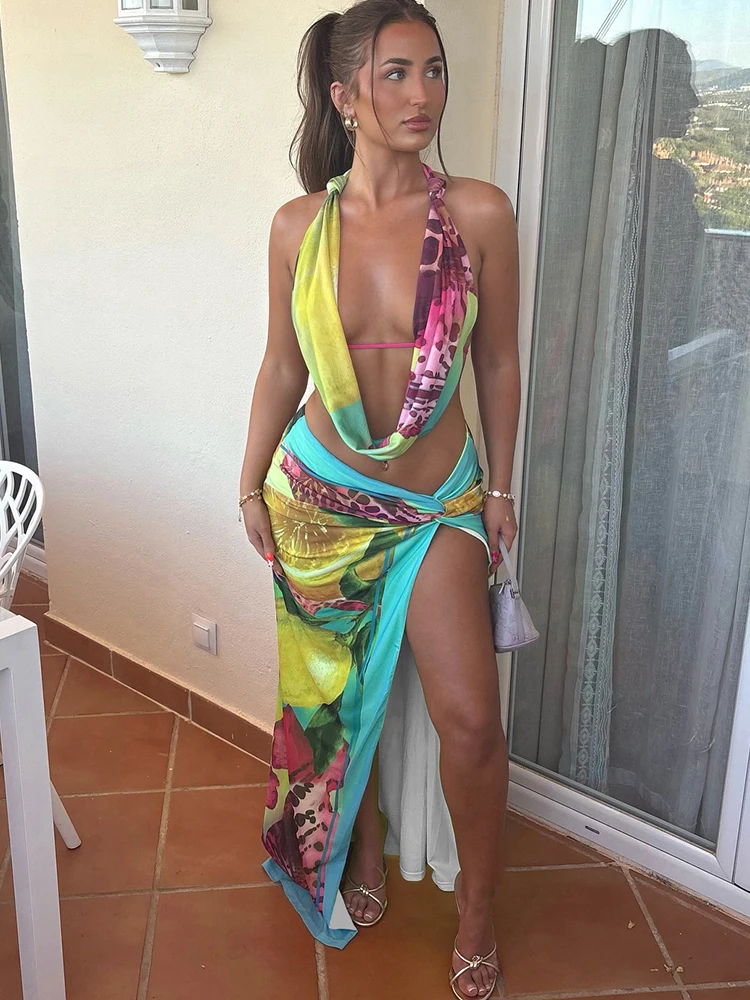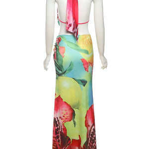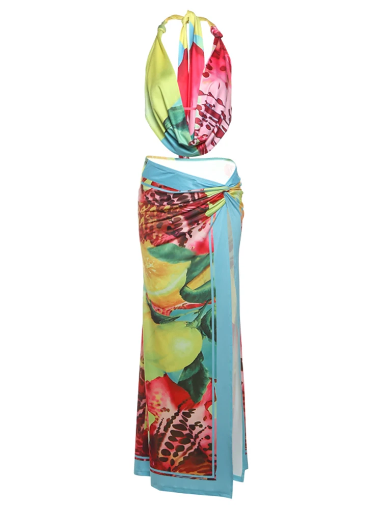 Nibber Sexy Colorful Leopard Women 2Piece Set Y2K Beach Vacation Halter Tank Tops+Wrapped Maxi Skirts Matching Vacation Clubwear