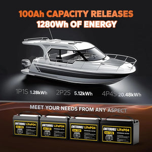 4 Pack 12V 100Ah LiFePO4 Battery Series=48V 100Ah