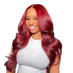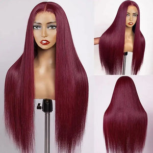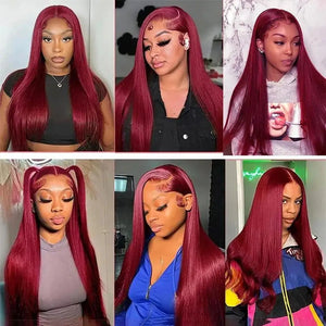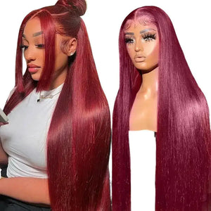 Pre Plucked 99J Colored Human Hair Wig 200% Density 99j Straight Lace Frontal Wig Burgundy 13x6 HD Lace Frontal Human Hair Wig