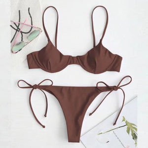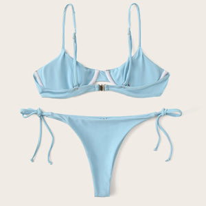 Push Up Padded Bra Thong Two Pieces Beachwear Solid Color Swimsuit Lace Up Bikini Set Summer Beach Wear Swimming Ropa De Mujer