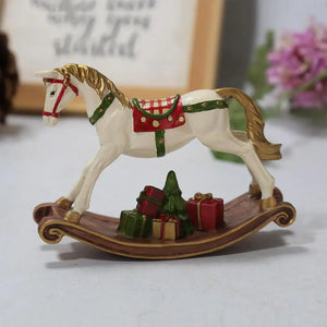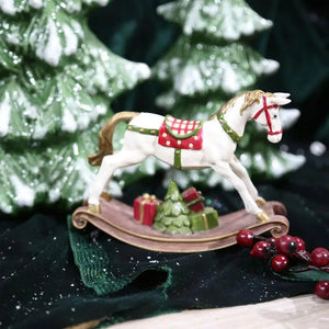 Christmas Rocking Horse Ornament is made from high-quality resin with hand painting, perfect for Christmas table decorations and tree hanging ornaments.