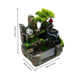 Resin Tabletop Water Fountain – Rockery Design, LED Lighting, Fish Tank, Air Humidifier, Meditation Aid for Home and Office Déco