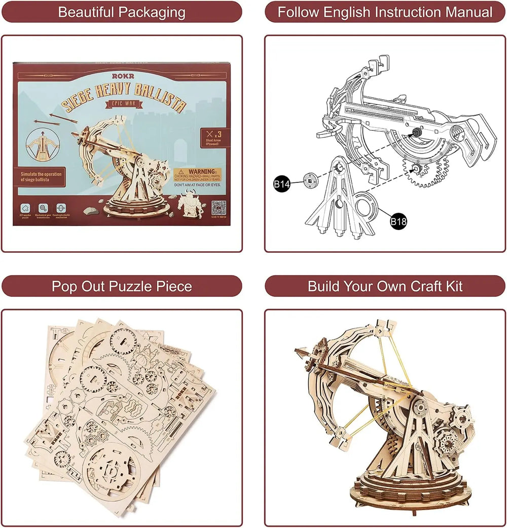 Robotime Rokr 3D Wooden Puzzle Wooden Model kit 142 Pieces Medieval Siege Toy Medieval Siege Toy Christmas gift