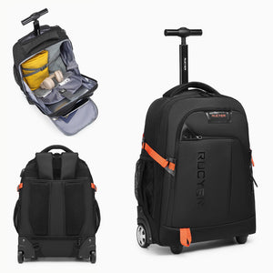 Wheeled rolling bag: With fashionable color matching and functional design, the multi-directional removable four-wheel rotary backpack can perform smooth free rolling movement on any occasion, such as international air travel, business flight travel, railway stations and so on. The compartment has sufficient storage space to easily store clothes and toiletries for 3-5 days of travel.