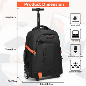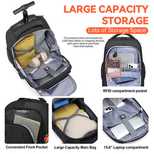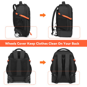 Rolling Backpack 18 inch Laptop Travel Backpack with Wheels Hidden Pull Rod Waterproof Carry On Luggage for Business Travel