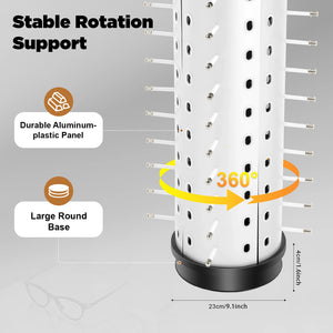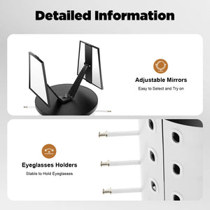 Holding up to 44 pairs of eyeglasses, this 360° rotating eyeglasses display stand is designed for opticians, allowing each pair of eyeglasses to show off its unique charm in different aspects. It is equipped with two adjustable mirrors and a 360° rotatable design, which makes it easy for customers to try on different pairs of glasses from different angles and choose the suitable style for themselves. Its delicate and practical design not only saves your space but also improves customers' shopping experience, which makes it an ideal choice for optical stores.