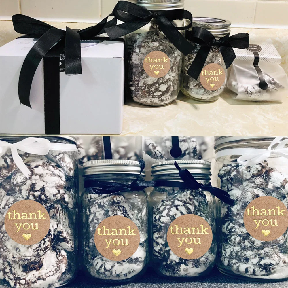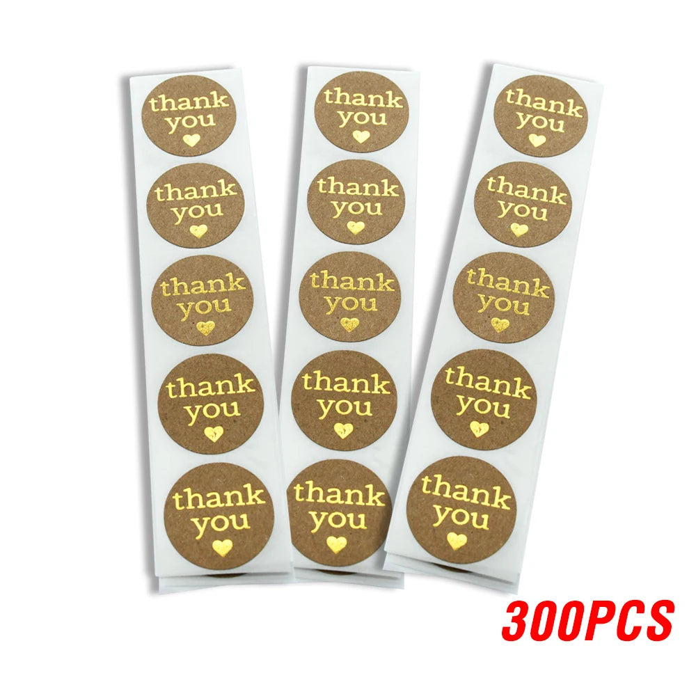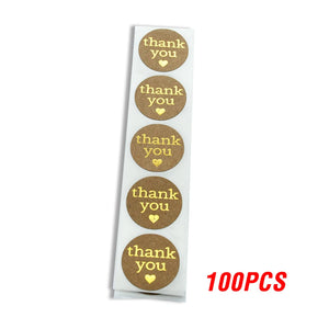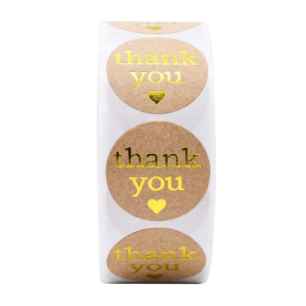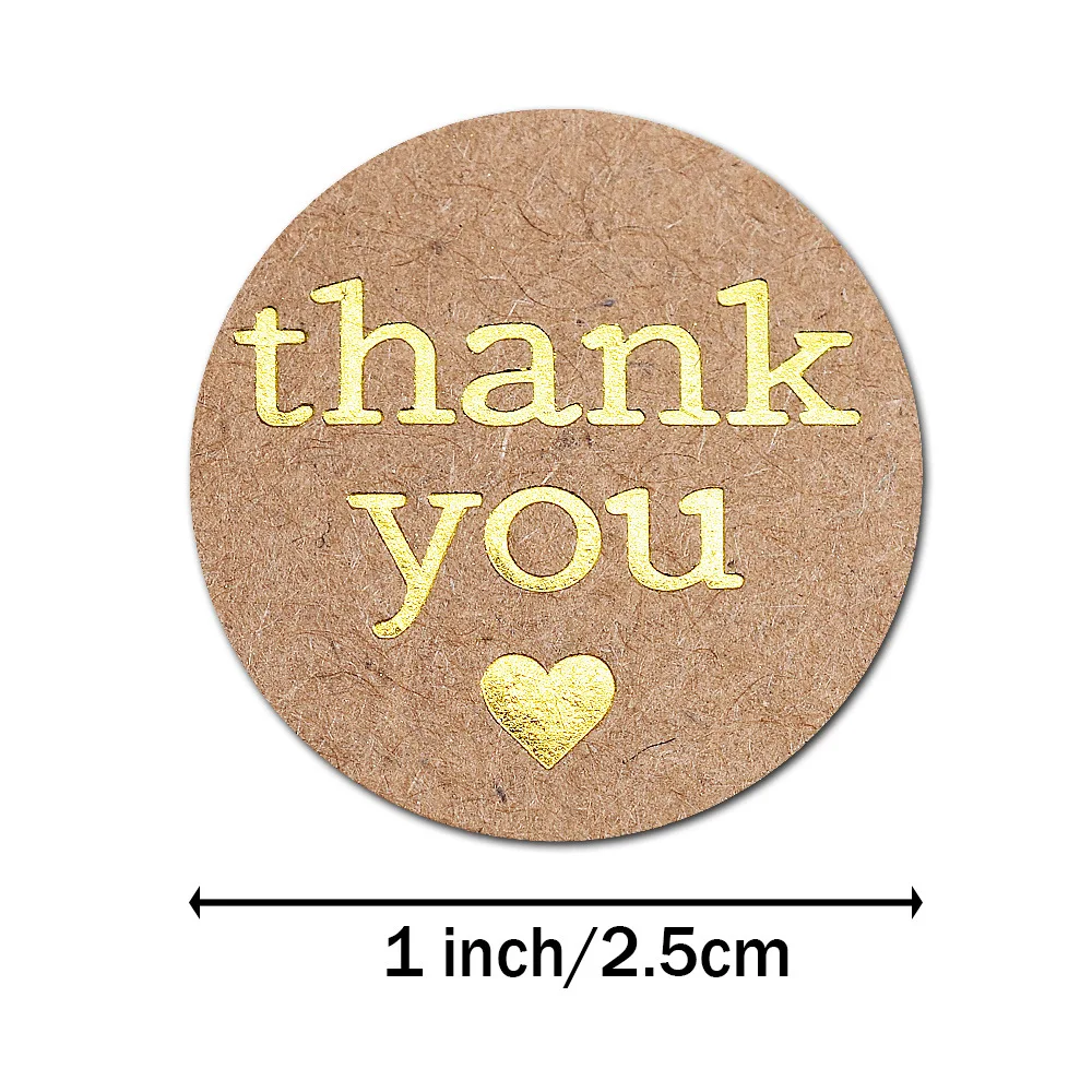 Round Thank You Stickers With Heart 1inch 100-500pcs Gold Foil Label Stickers Gift Packaging Seals Kraft Stationery Sticker