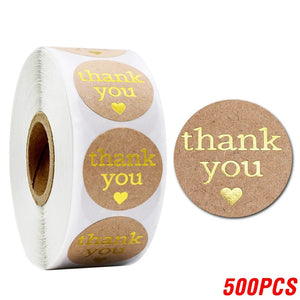Paper Round Thank You Stickers With Heart 1inch 500pcs Gold Foil Label Stickers Gift Packaging Seals Stationery Sticker