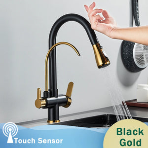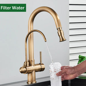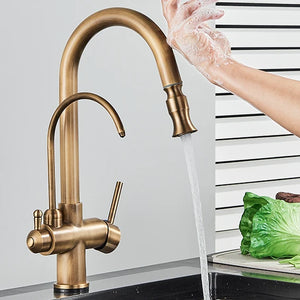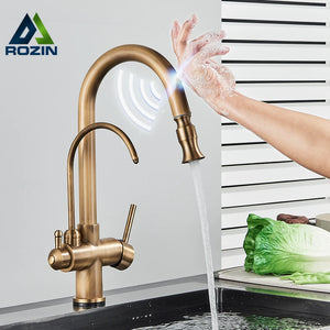 Rozin Touch Sensor Filter Water Kitchen Faucet Antique Brass Put out Sprayer Mixer Tap with Swivel Pure Water Crane for Kitchen