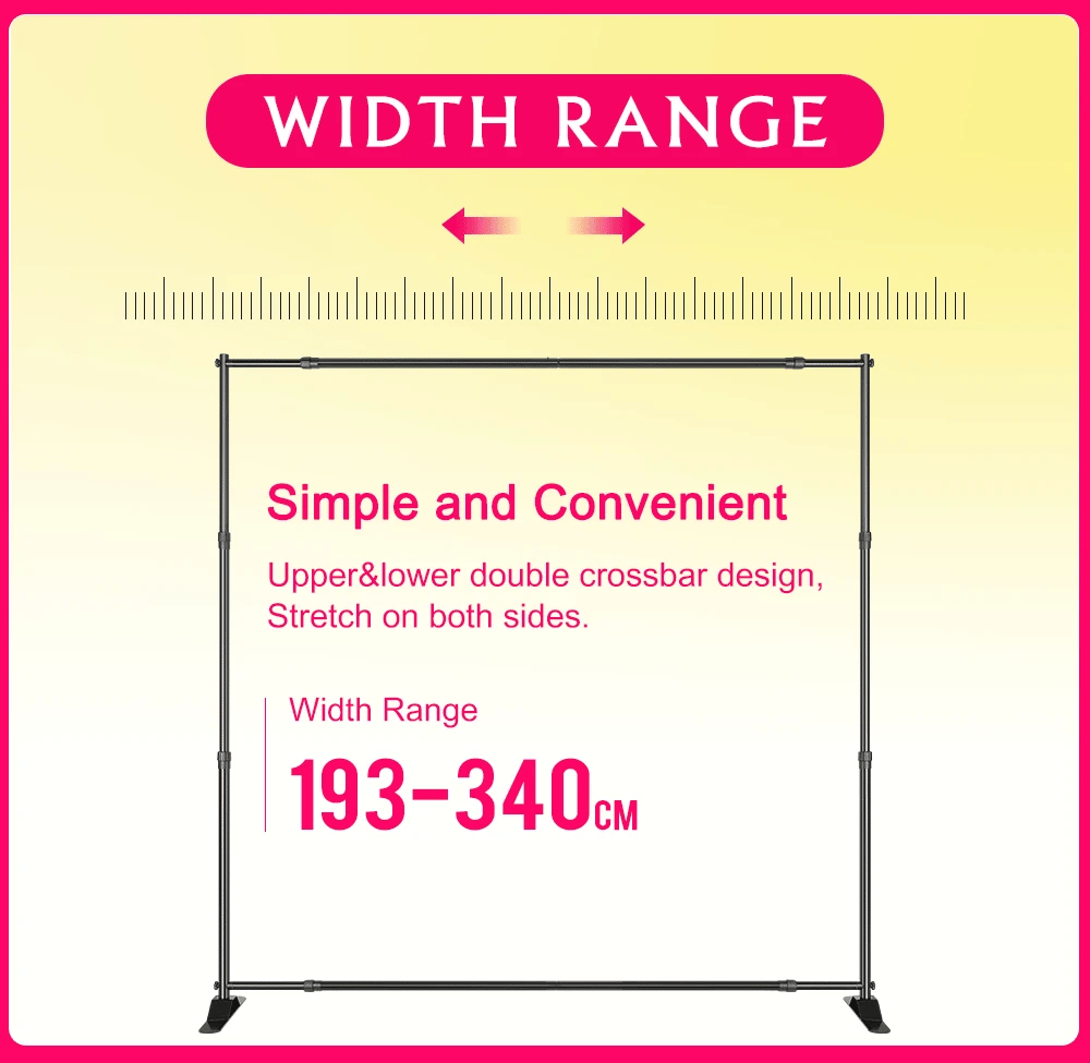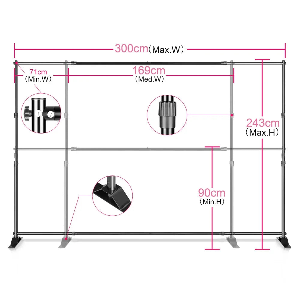 Background frame can adjust from 197.5x104.5cm to 340x270cm(Width x Height)