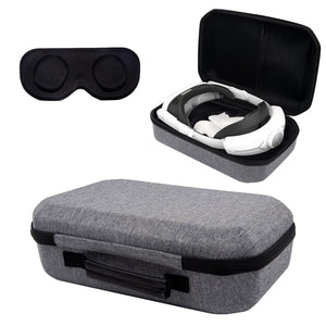 Feature: 1. Design: Precisely molded and tailored for Meta Quest 3 players on-the-go, this carrying case provides effective protection for your VR device. The sleek gray color showcases a minimalist design that is both low-key and stylish. 2. Premium Protection: Made with Oxford cloth, EVA, and polyester materials, this portable bag is shockproof and able to absorb vibrations, reducing the risk of accidental damage. The internal grooves prevent accessories from scratching each other, keeping your device in excellent condition. 3. Lens Protection: The lens cover is made of knit fabric, soft and comfortable, ensuring it won't scratch the device itself. It is easy to use and clean, providing dust, impact, and scratch resistance. It offers optimal protection for your lenses, ensuring clear vision. 4. Organized Storage: The interior of protective bag features thickened grooves and a storage mesh pocket, keeping the VR headset and controllers separate to prevent rubbing. An additional zippered mesh pocket is provided for storing small accessories like charging cables, keeping everything neat and organized. 5. Lightweight and Portable: Equipped with a comfortable handle made of PU leather, this hard carry case is lightweight and strong, making it ideal for carrying your VR device and enjoying games during business trips, family gatherings, or travel.The sturdy dual zipper design allows for effortless opening and closing of the case, while the interior molding keeps all items securely in place without the need for a shoulder strap or harness. It is fully compatible with official for Meta Quest 3 and accessories. Specification: Origin: Mainland China Type: Portable bag Compatible Brand: for Meta Compatible Model: for Meta Quest 3 Name: VR smart glasses storage bag + lens protection cover Material: Oxford cloth+EVA+polyester color: gray Features: With PU handle & partitioned storage & storage mesh bag Applicable: for Meta Quest 3 host/handle/charging cable storage size: Storage bag: 340.00x230.00x115.00mm/13.39x9.06x4.53inch Lens protective cover: 130x65mm/5.12x2.56inch Weight: 700g Note: The product does not include VR equipment