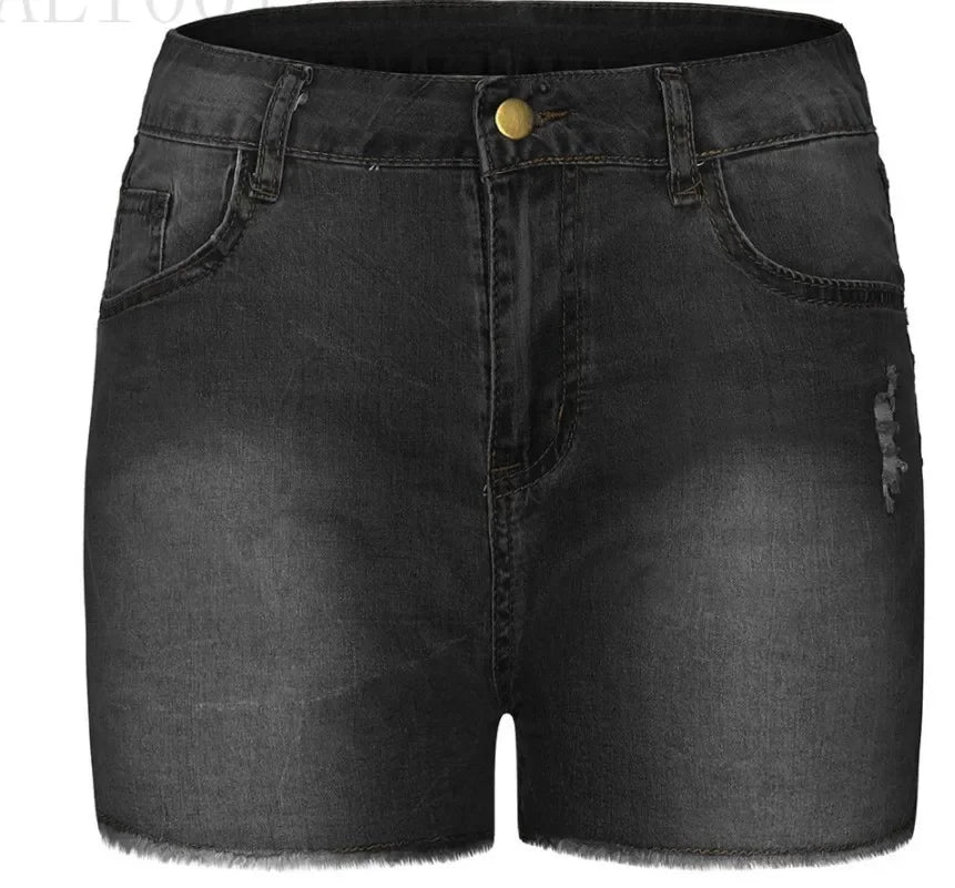 Shorts Denim Washed Women Jeans Tassel Solid High Waist Pockets Sexy Skinny Distressed 2025 Vintage Streetwear Spliced