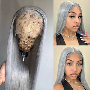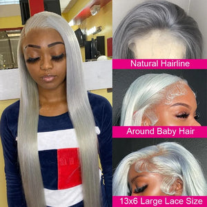 Silver Grey 13x4 Hd Lace Frontal Wig 100% Human Hair Grey Colored Straight Lace Front Wigs For Women Brazilian Glueless Wig Sale