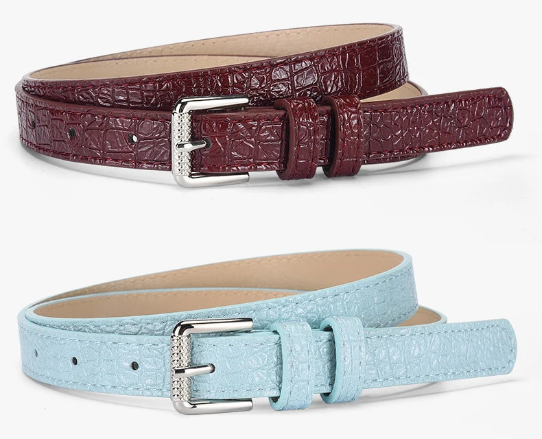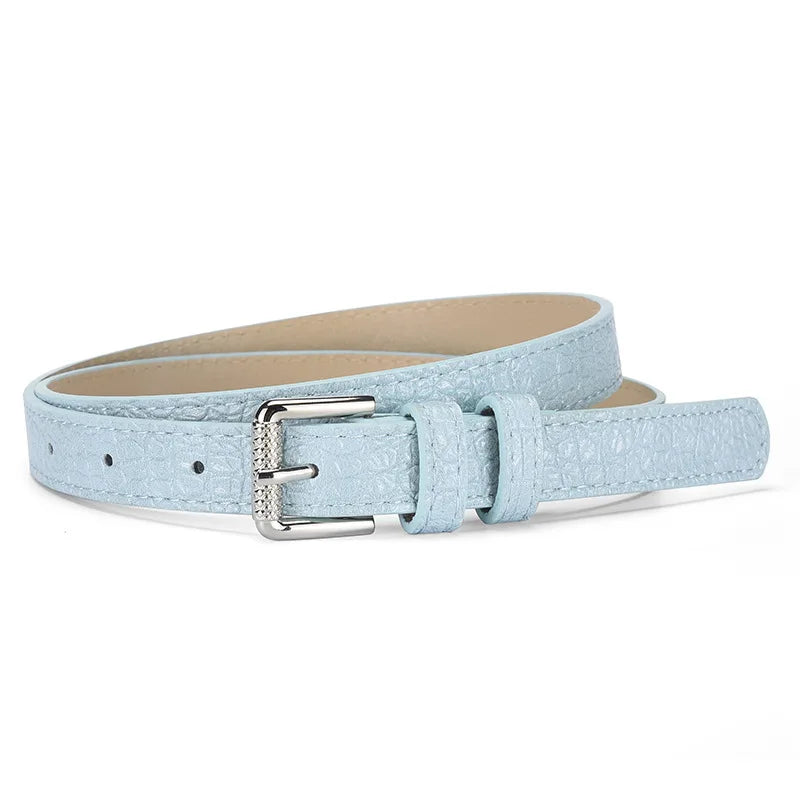 Silver Pin Buckle Thin Belt Women's Fashion Casual Dress Jeans Accessories Blue Girdle Y2k Girls PU Leather Black Waistband