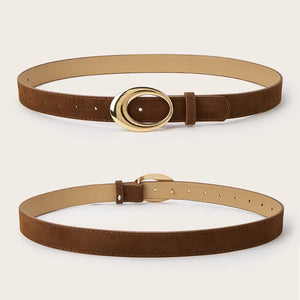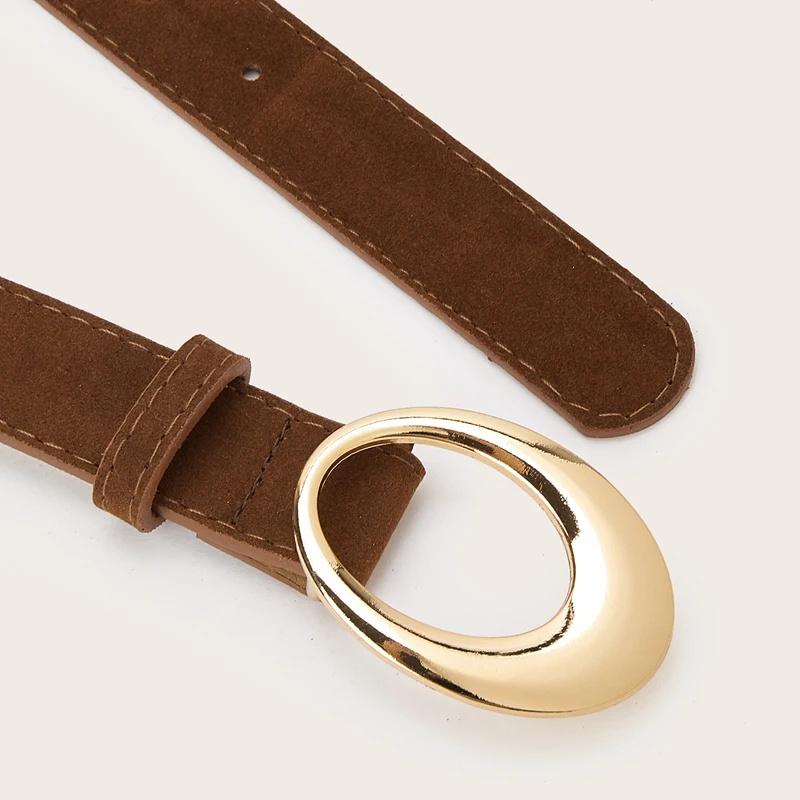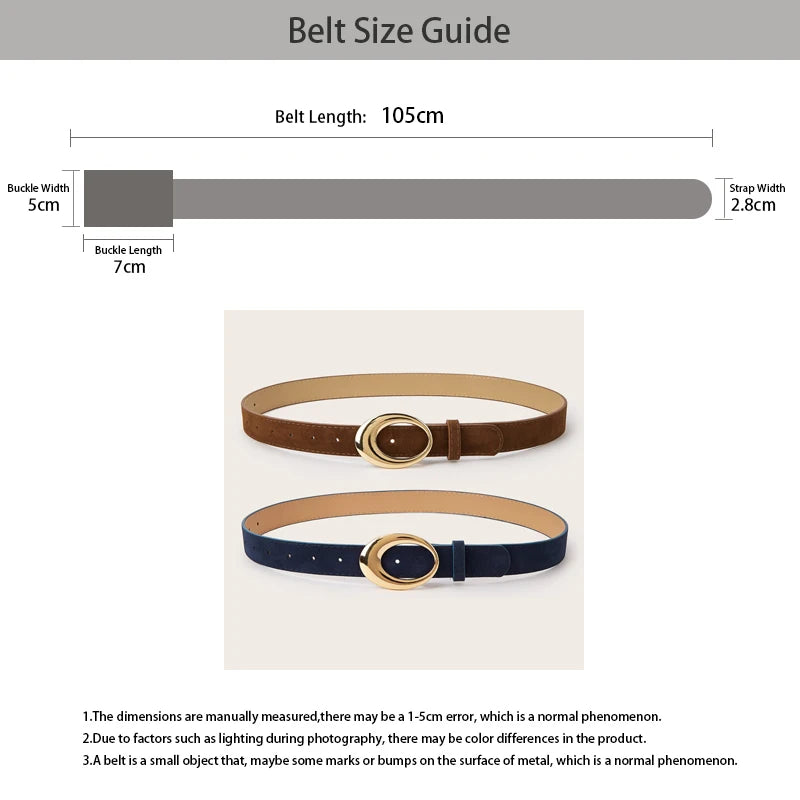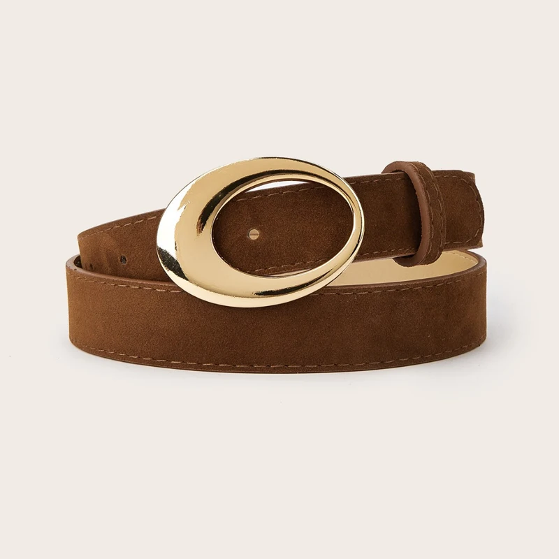 SPECIFICATIONSBelt Width: 2.8Belts Material: Suede,PUBrand Name: NoEnName_NullCN: GuangdongChoice: yesDepartment Name: AdultGender: WomenHigh-concerned chemical: NoneItem Type: BeltsOrigin: Mainland ChinaPattern Type: GeometricStyle: FashionSimple Fashion Oval Golden Buckle Suede Leather Belt 2.8cm Width