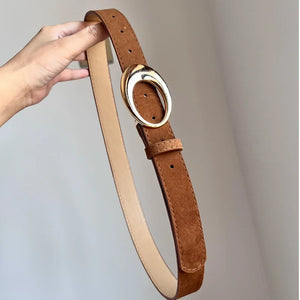 Simple Fashion Oval Golden Buckle Suede Leather Belt 2.8cm Width Women Belt For Jeans Luxury Designer Dress Coat Brown Waistband