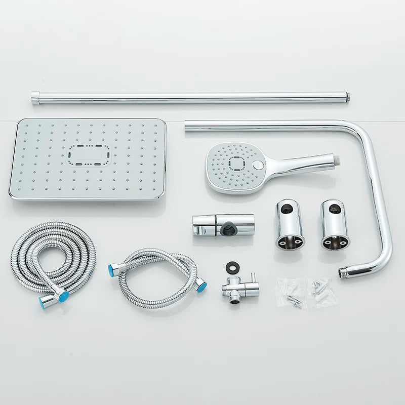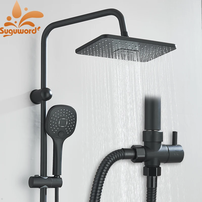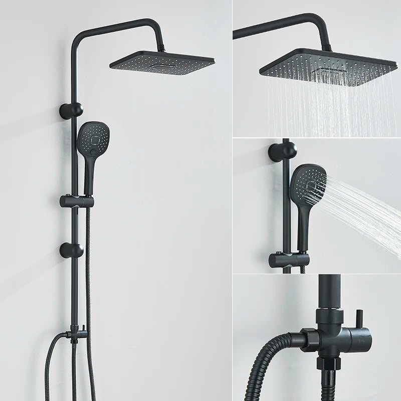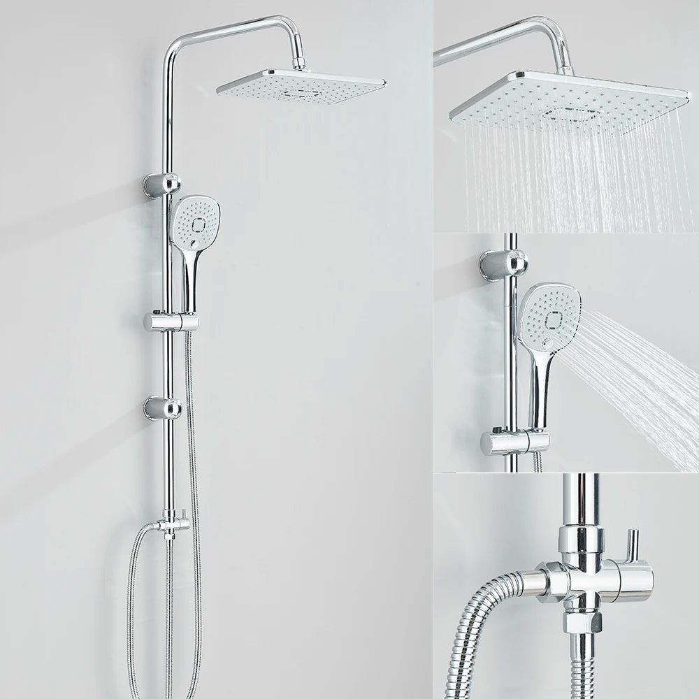 Single Hole Input Bathroom Shower Faucet Set Rainfall Head shower with Handshower Wall Mount Bathroom Shower System
