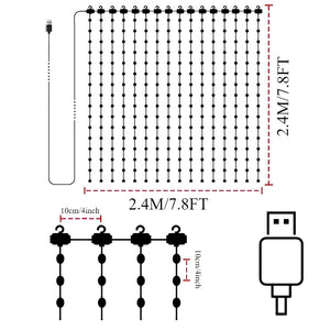 【APP Control With USB】: Smart APP controller with RGB colors, brightness, and speed. With 24 scene modes that can be randomly switched with 54 choices, and music mode, and timer. The power supply of the curtain fairy lights is the USB port, you can plug it directly into the charging bank, or use the plug with the USB port.