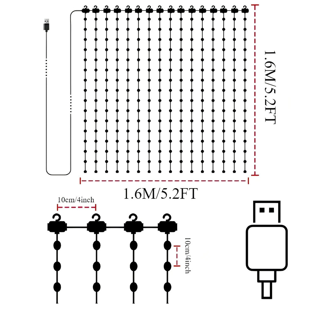 Smart LED RGB Curtain Lights USB App Control String Music Sync DIY Pattern and Text Programmable Fairy Lights for Christmas