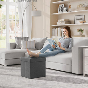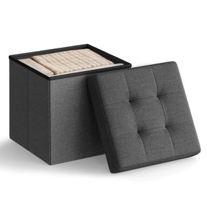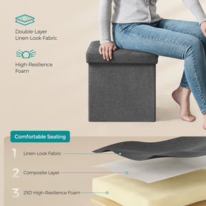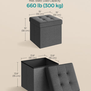 SONGMICS MAZIE Collection - 15 Inches Folding Storage Ottoman Bench, Ottoman Foot Rest, End of Bed Bench, Storage Chest