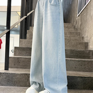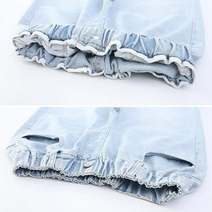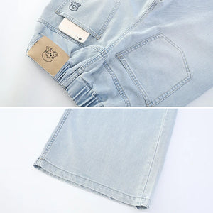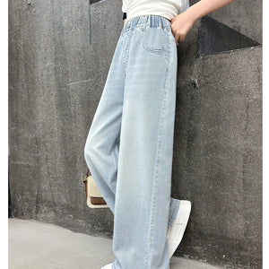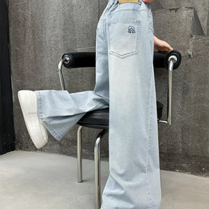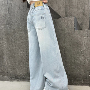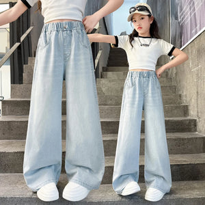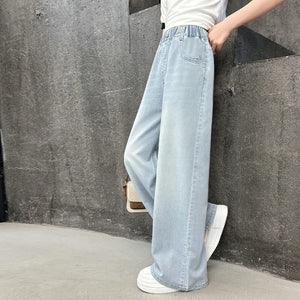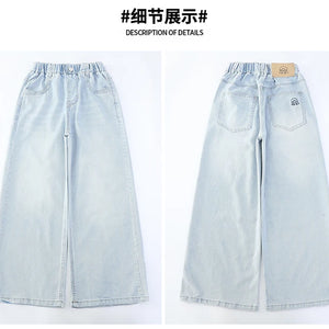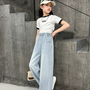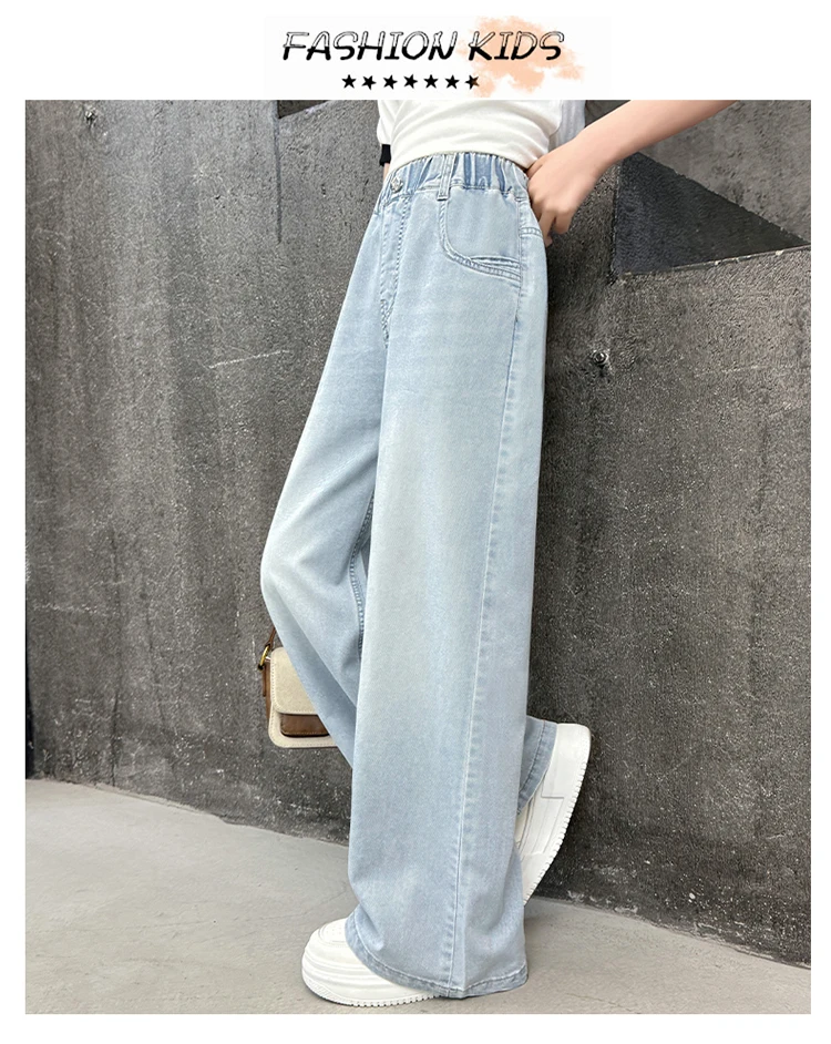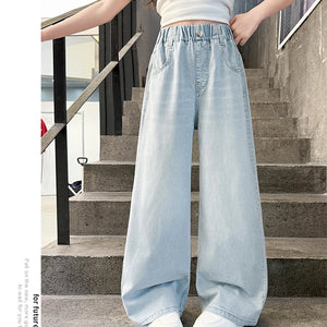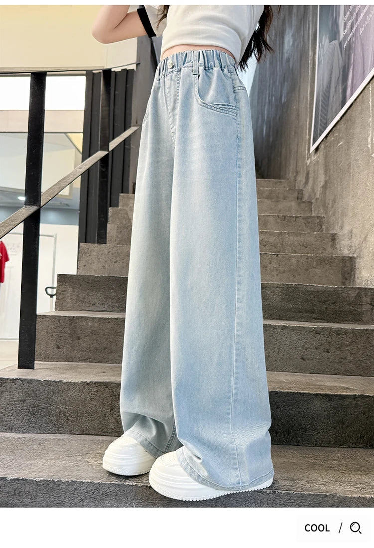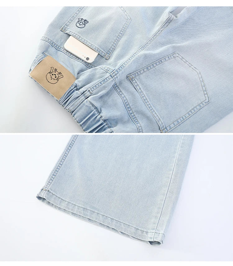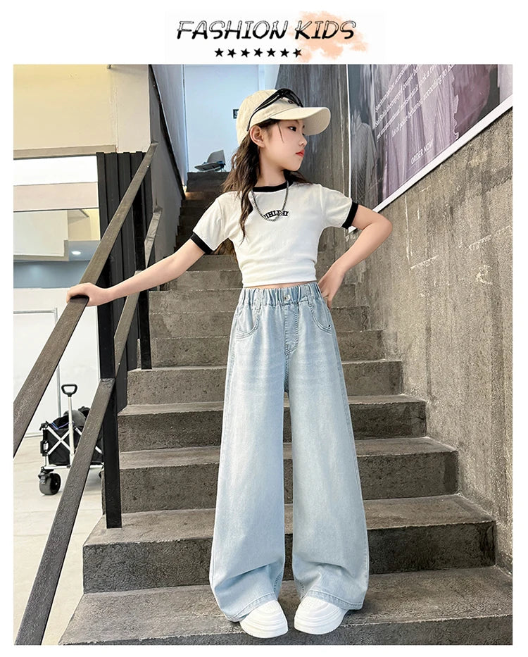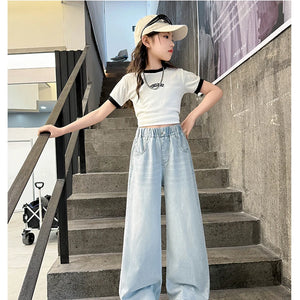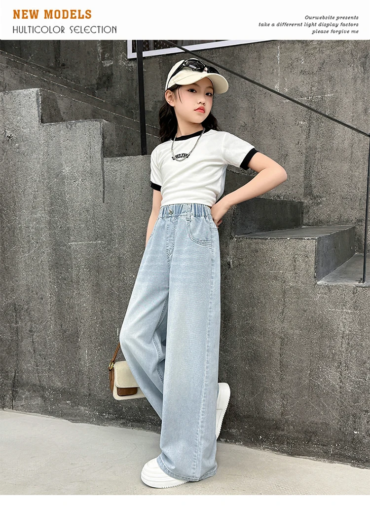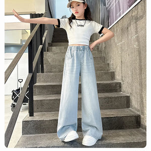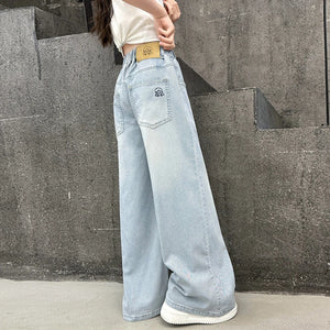 Spring and summer girls' jeans; cute girl's stylish loose straight-leg pants.