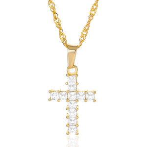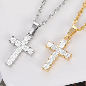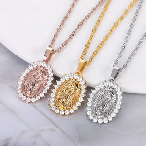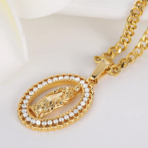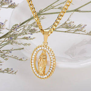 Stainless Steel Water Wave Chain Jesus Cross Necklace For Women Holy Virgin Mary Pendant Necklace For Men Religion Faith Jewelry