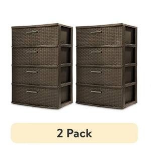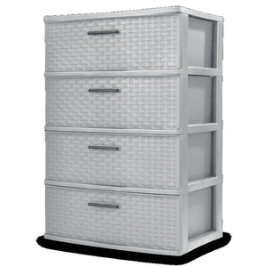 Organize visible storage areas with this 4 Drawer Wide Woven Plastic Organizer. These woven storage items combine style and function; the stylish look of woven meets the convenience, durability, and value of plastic to provide a variety of decorative solutions for your living space. The 4 Drawer Wide Woven Tower is perfect for home storage needs. Four opaque drawers control and conceal clutter while providing access to frequently used items. Easy-pull handles allow for easy opening and closing of drawers, and drawer stops prevent drawers from being accidentally removed.