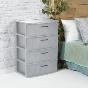 Stylish 4 Drawer Wide Woven Plastic Organizer for Home Storage Needs and Durability