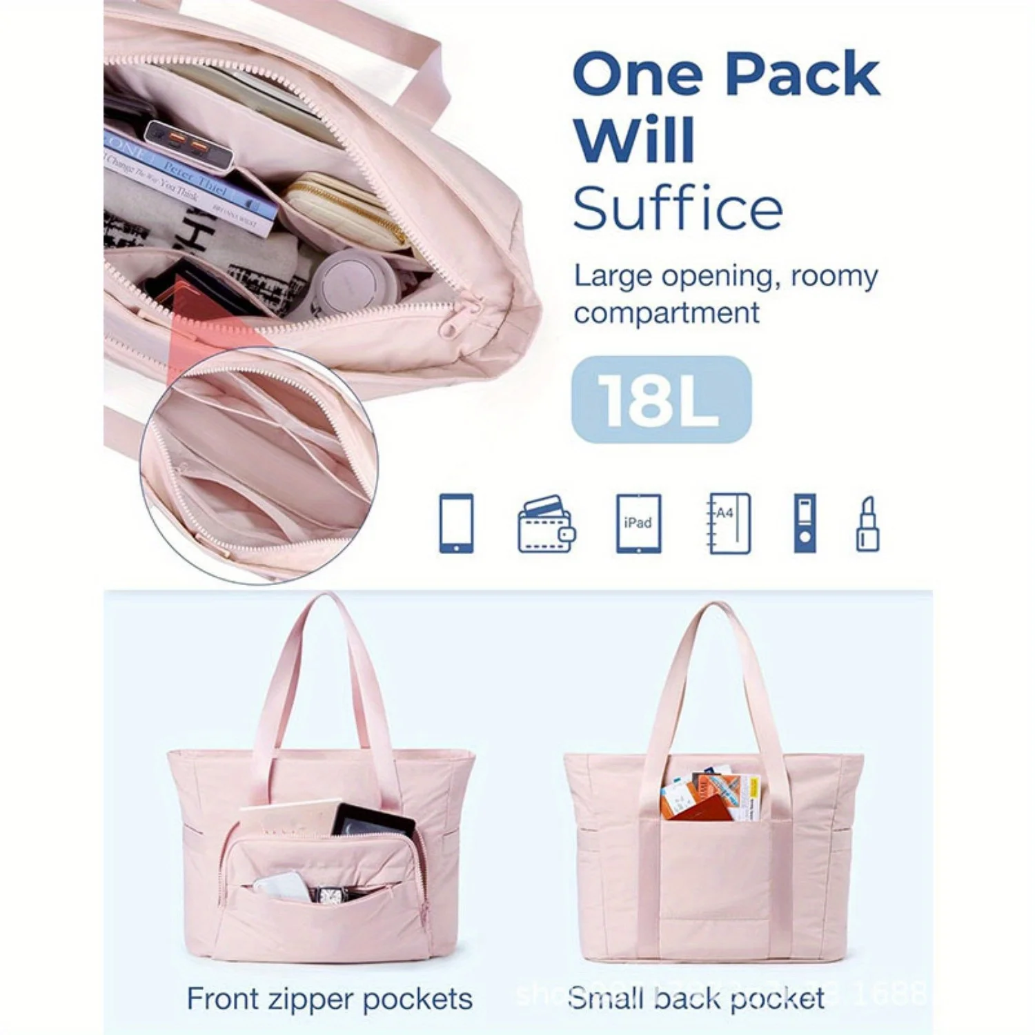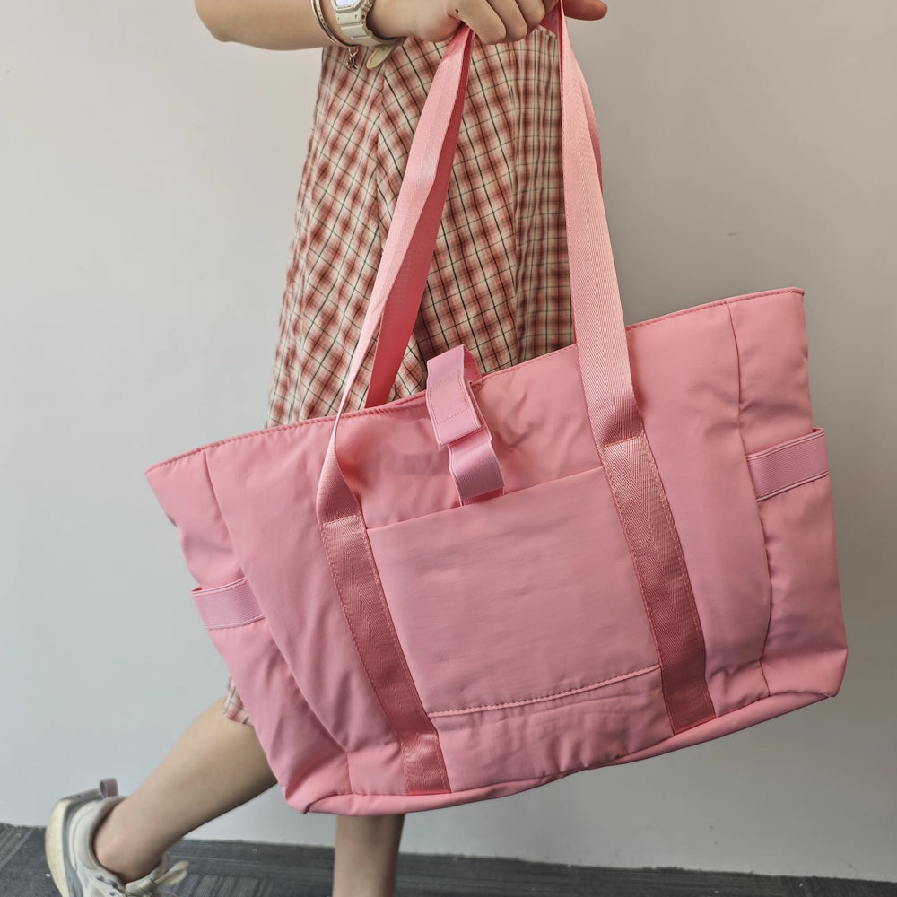Stylish and simple pink nylon shoulder bag handbag, lightweight and portable shopping bag, suitable for shopping,commuting