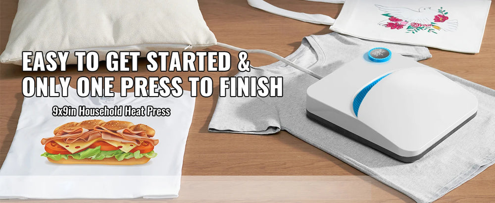 SucceBuy 9x9/12x10 in Portable Heat Press Machine DIY Shirt Printing Multifunctional Sublimation Transfer HTV Vinyl T-shirt Bag