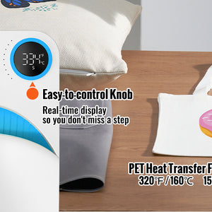 Knobs That Work with You: Rotate the knob to the right to set the temperature and rotate it to the left to set the time. Compared with old-style heat presses, our portable heat press comes with 9 LED indicators and a large digital display, providing an at-a-glance summary of the temperature and time state. Enjoy every operation and process confidently. This is your time to relax!