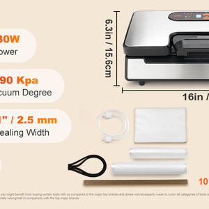 Everything You Need: With our meat vacuum sealer machine, you'll also receive an 8.7 in x 9.8 ft vacuum bag roll, an 11 in x 9.8 ft vacuum bag roll, 10 Pcs 11 in x 15.7 in vacuum bag, an external hose with an interface, an extra foam gasket, a high-temp adhesive tape and a user manual. This means you can seal a wide variety of bags and preserve all your favorite foods with ease.