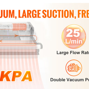 Sealed Fresh: Our 95Kpa powerful vacuum sealer machine is designed with not one, but two vacuum pumps to provide maximum suction and two sealing strips to ensure airtight packaging. Keep your food fresh and free from bacteria with ease. Say goodbye to food wastage and hello to delicious, healthy meals every day!