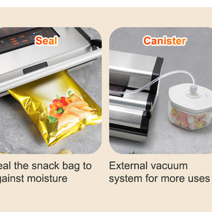 Ready for Anything: With the ability to vacuum seal both dry and moist foods, marinate with the external hose and interface, and choose the sealing time and vacuum strength, this machine is perfect for all your food storage needs. And if you prefer a hands-on approach, it also offers manual control and sealing-only options.