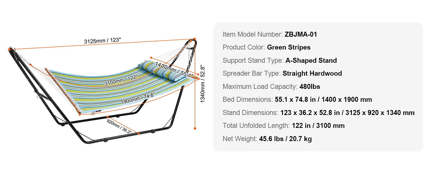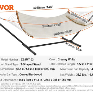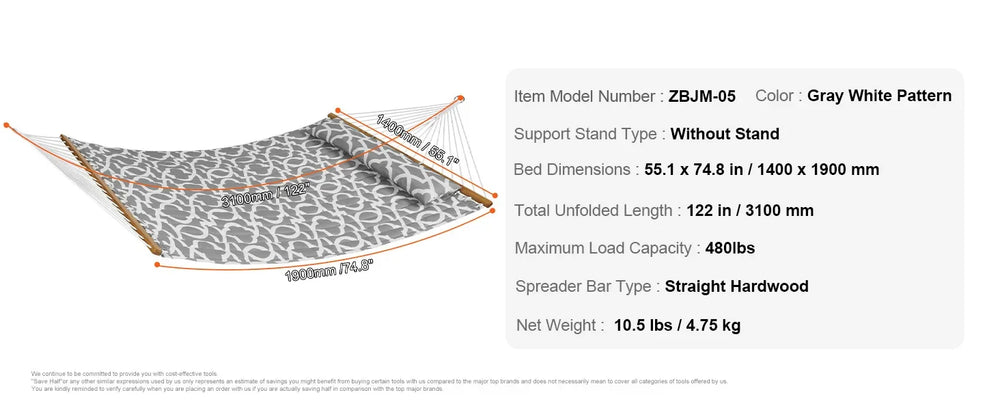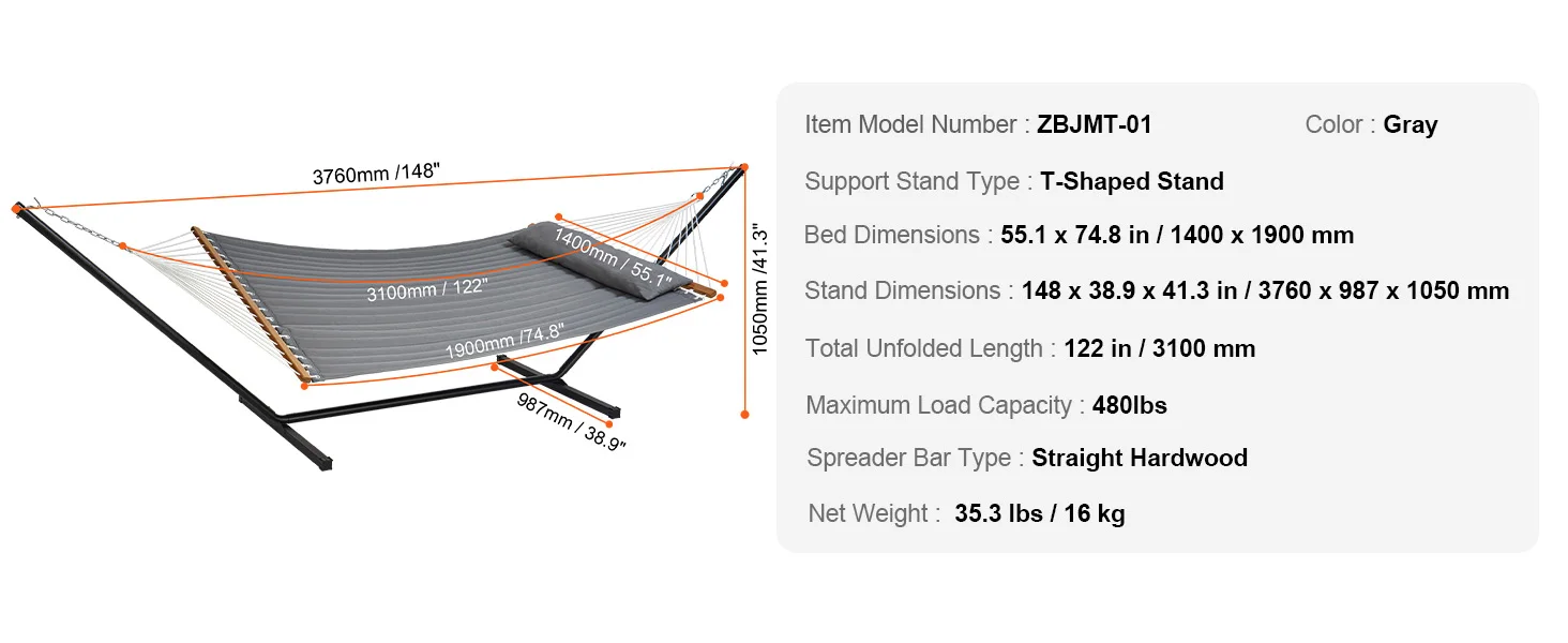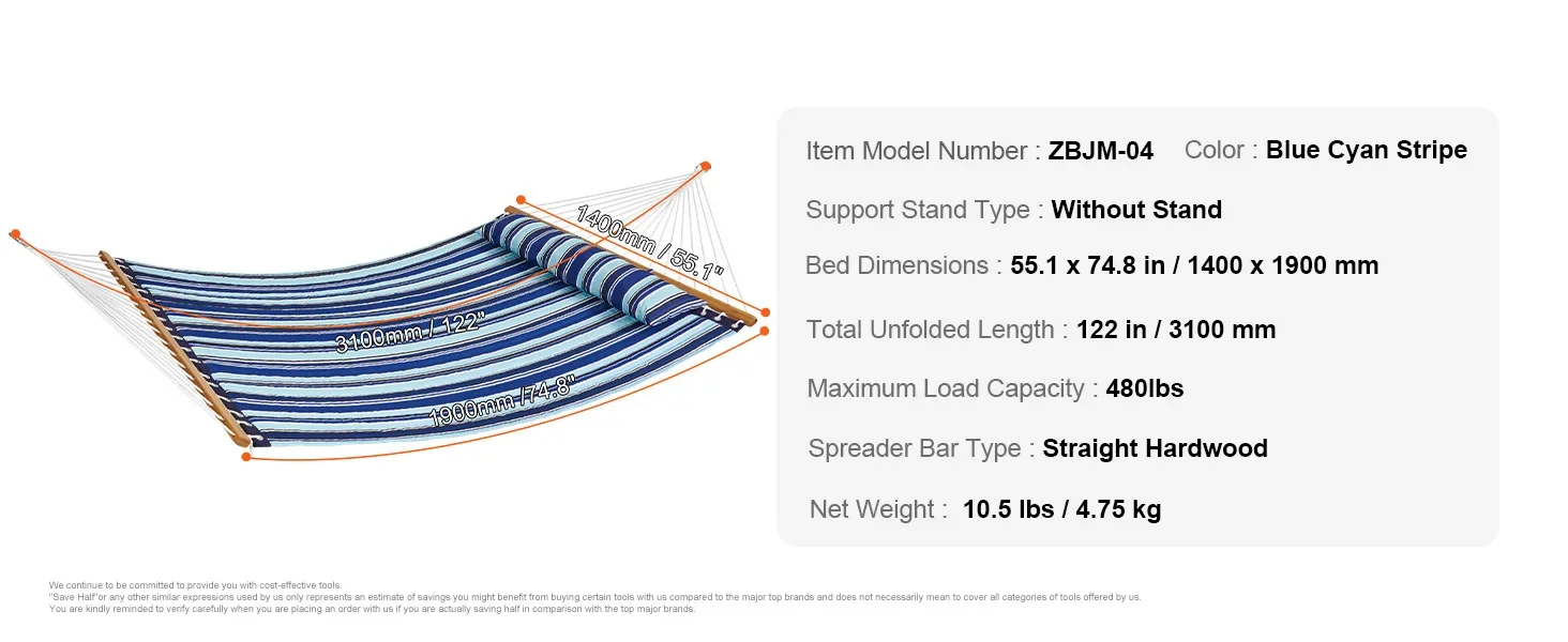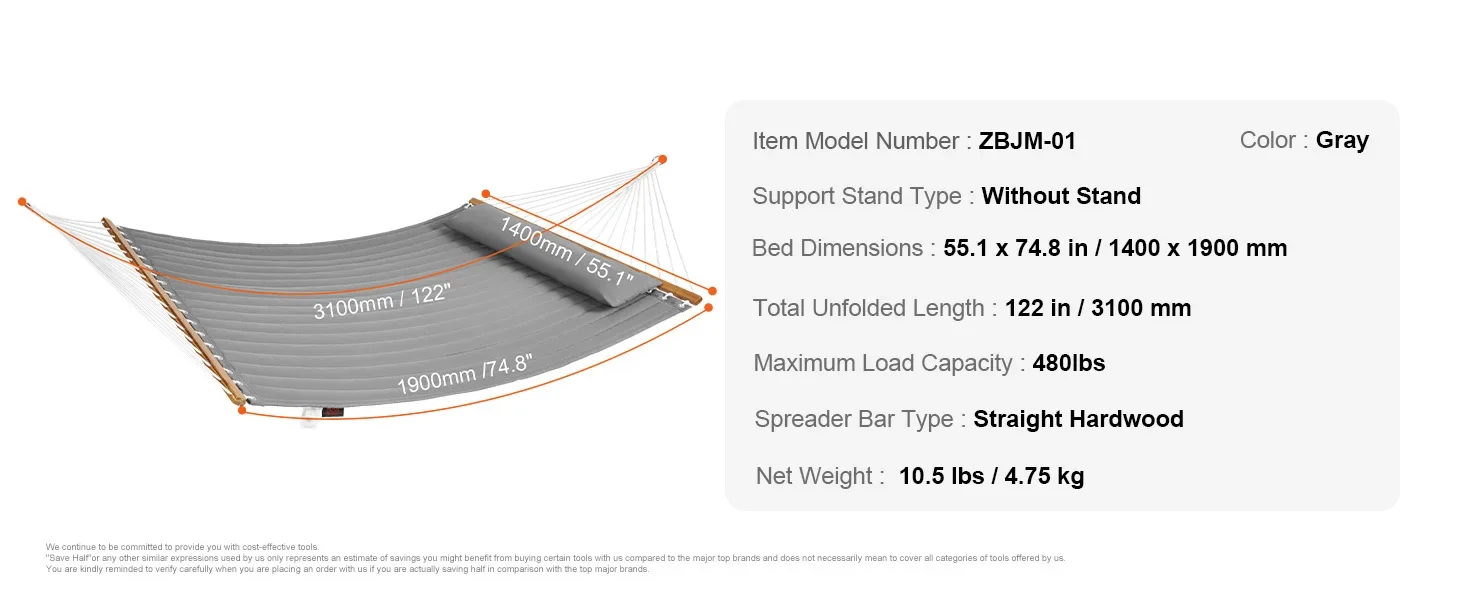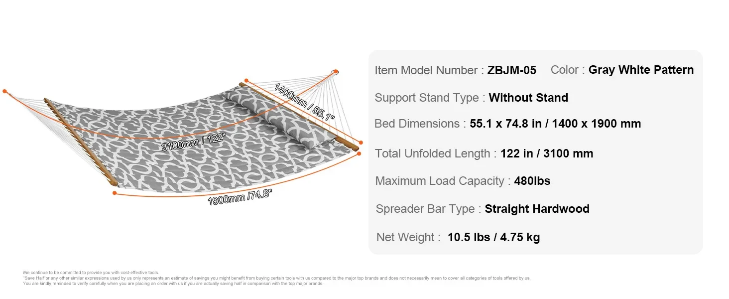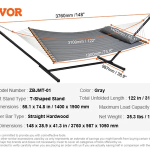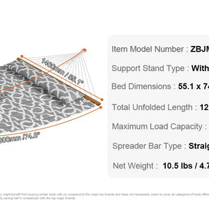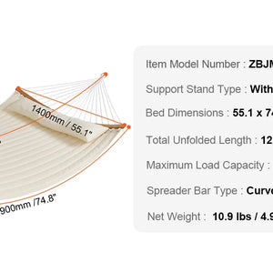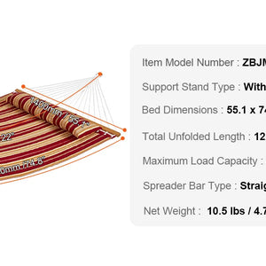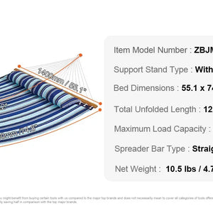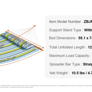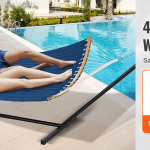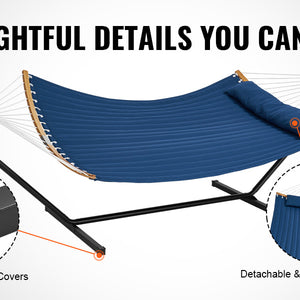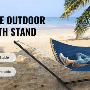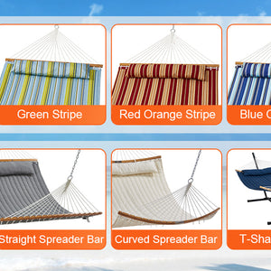 Versatile and Stylish: Our double quilted hammock with spreader bars offers a variety of colors and styles, making it perfect for your backyard, garden, patio, poolside, and more. Effortlessly set up and pack away, use it with trees or a hammock stand, and turn your place into a delightful retreat.