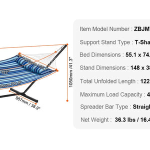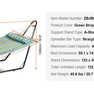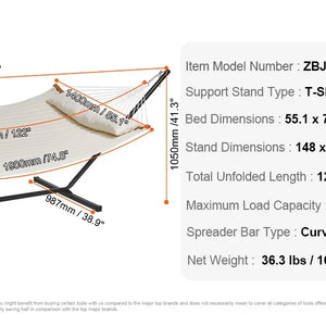 SucceBuy Two Person Hammock with Stand Included Double Hammock with Curved Spreader Bar and Detachable Pillow and Portable Bag