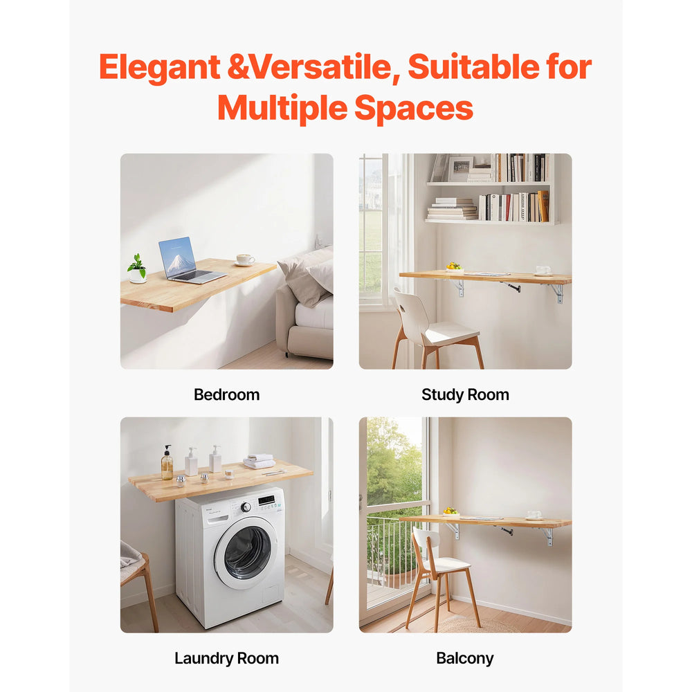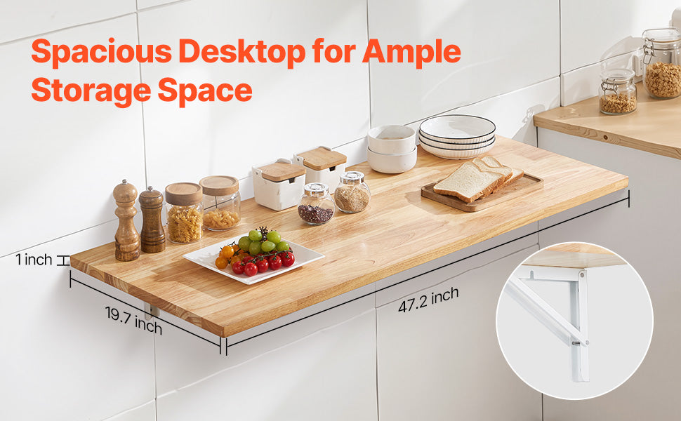 Premium Material: Crafted from 100% rubber wood material, this wall mounted folding table meets comprehensive environmental emission standards, suitable for those who pursue a natural quality of life. Its rounded corner design reduces potential risks from collisions, enhancing security for you and your family.