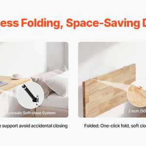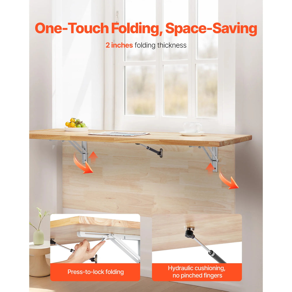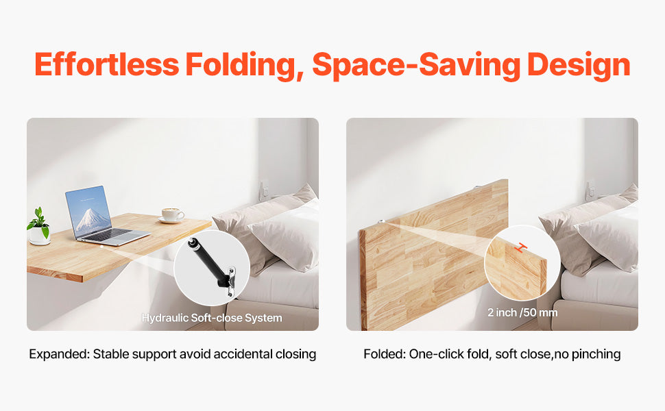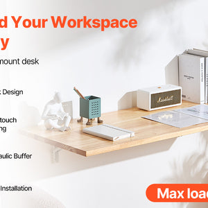 Space-Saving Design: Designed to save space, this wall desk folds and unfolds quickly, ideal for small spaces. The hydraulic slow-closing brackets make it ultra-convenient for immediate use without the need for large reserved spaces—just unfold and start working or display items.