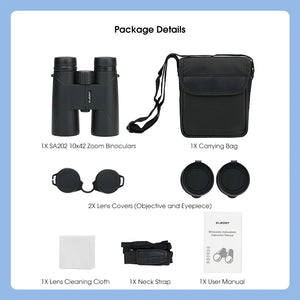 SVBONY SA202 10x42 Roof Prism Binocular with Neck Strap and Soft Carrying Case