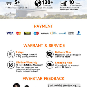 The 42mm green fully multi-coated objective lens and the BK7 prism ensure high transmittance for a brighter and clearer aperture, and providing clear, detailed and high contrast images and offering easeful observation experience even in low light conditions.