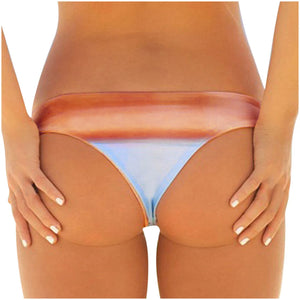 Women Vintage Print Low Waist Brazilian Bikini Bottom Swimwear Briefs Beachwear Brazilian Bikini Bottom Side Tie Thong Bathing Swimbottom
