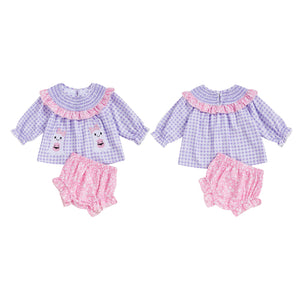 Baby Girls Shorts Set, Long Sleeve Plaid Embroidery Ghost T-shirt with Floral Shorts Fall Outfit Halloween ClothesWhether your baby girl is playing at the park or attending a party, our shorts set is versatile enough to suit any occasion.