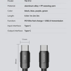 Toocki 100W Type C to USB C Cable PD 3.0 Quick Charge 4.0 Fast Charging Type C to Type C for iPhone 15 Macbook Samsung Xiaomi