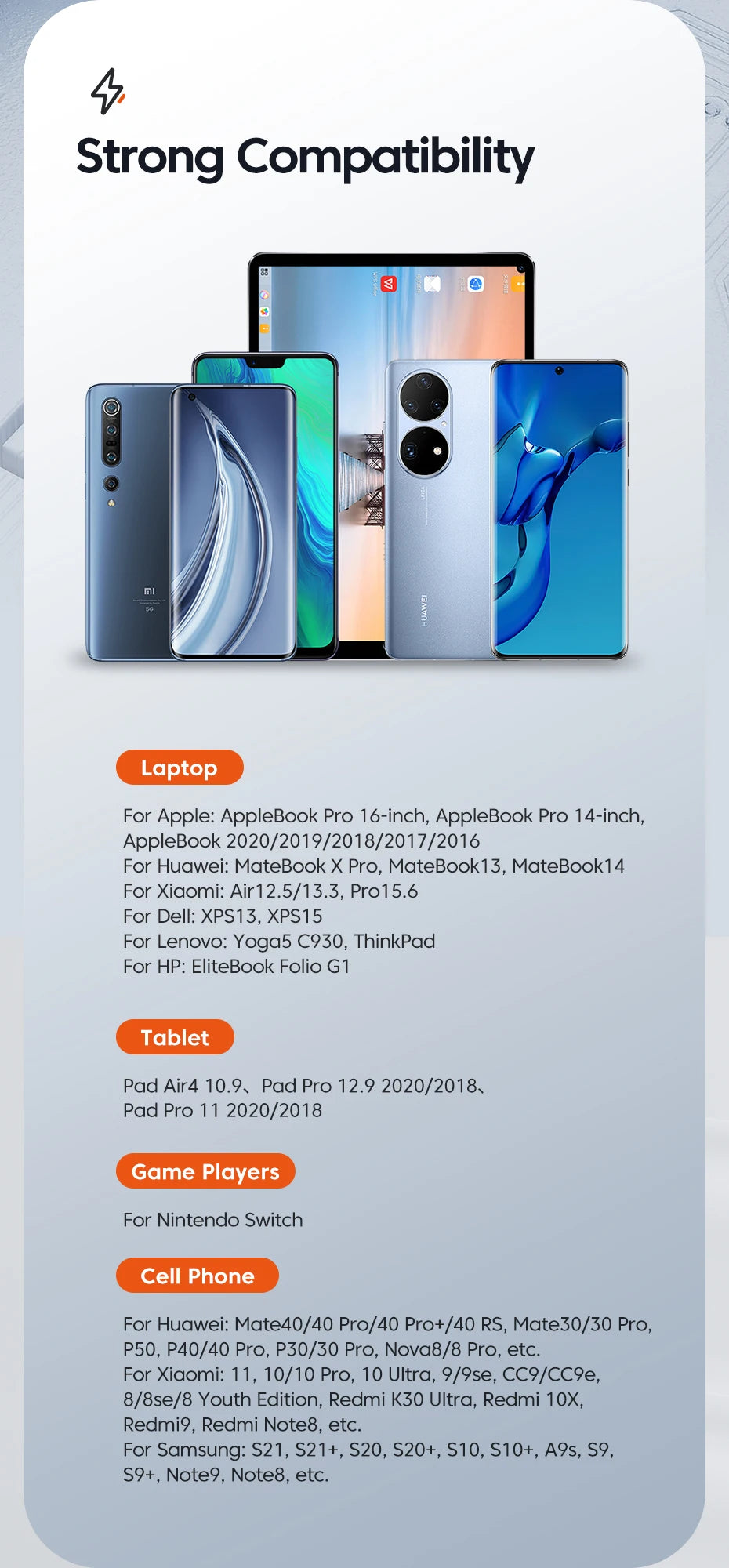 • PD 3.0:Provides stable and fast charging for your device with the latest PD 3.0 technology.
