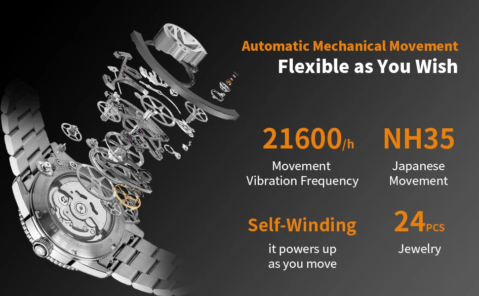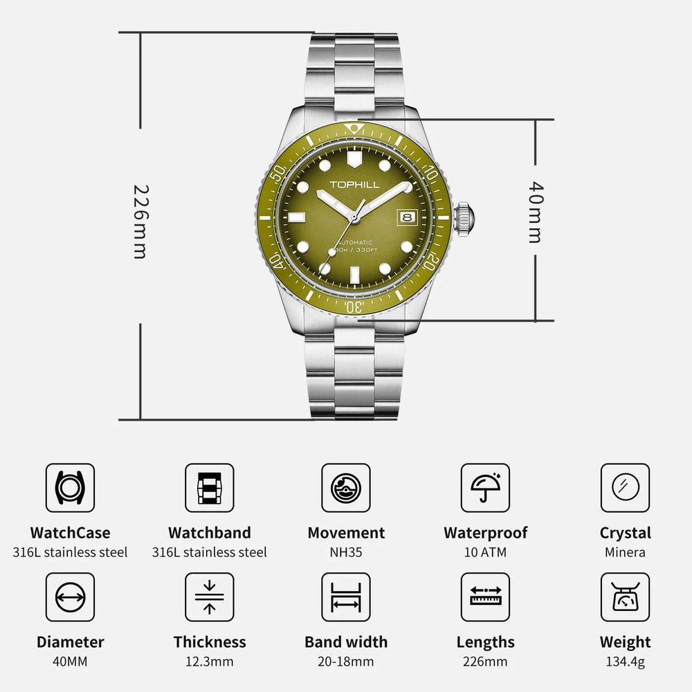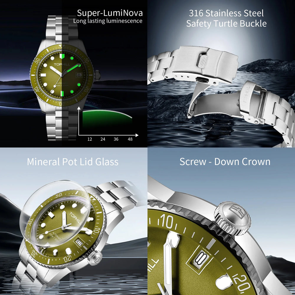 TOPHILL Mechanical watch Men's Watches Business Watches NH35 Automatic Movement watch Dive watch men