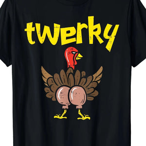 Turkey Butt Funny Thanksgiving Twerk Dance Pun Gift T-Shirt - Cute Graphic Tee For Men Women 100% Cotton