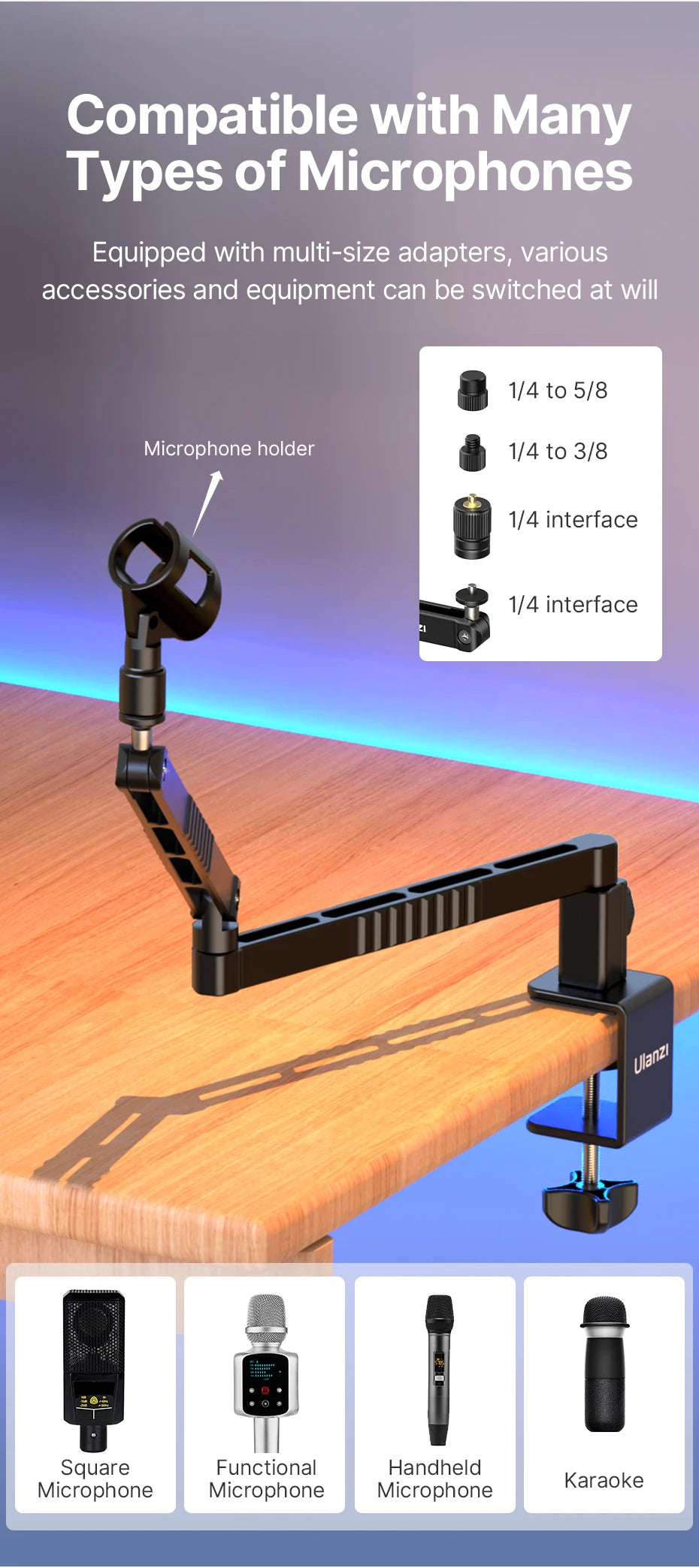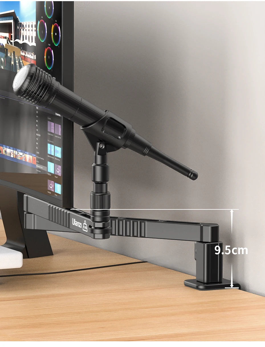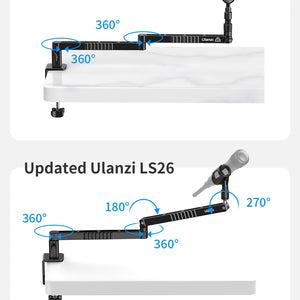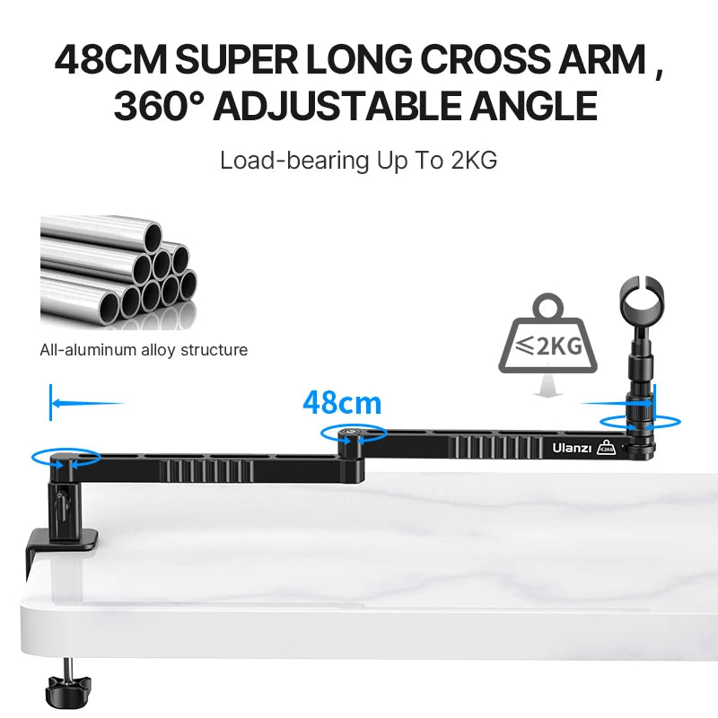 Ulanzi LS26 Desktop Low Microphone Stand 360° Adjustable 48cm Super Long Cross Arm with Microphone Holder 1/4'' 3/8'' 5/8''