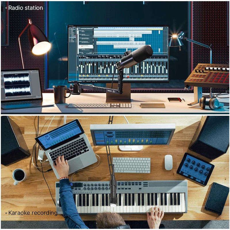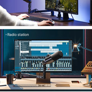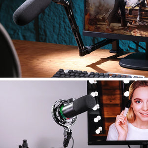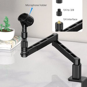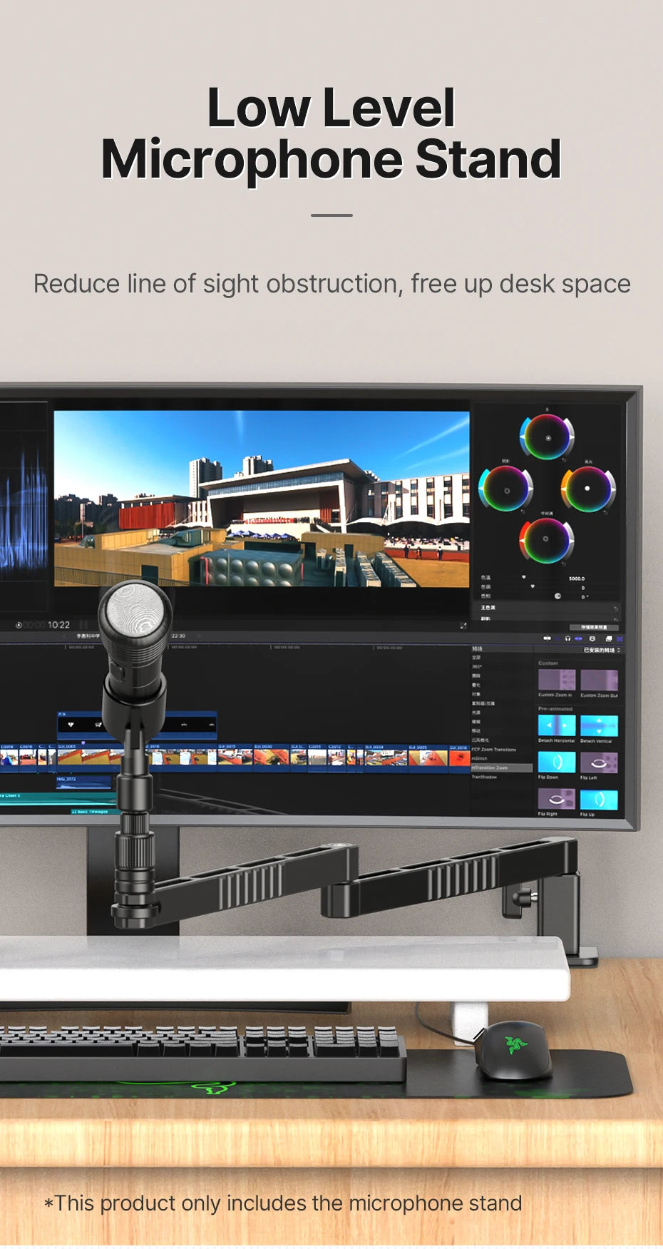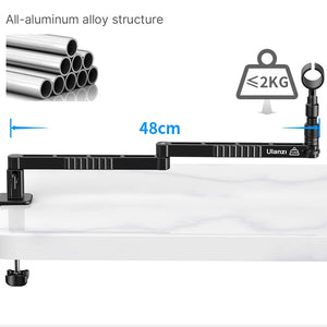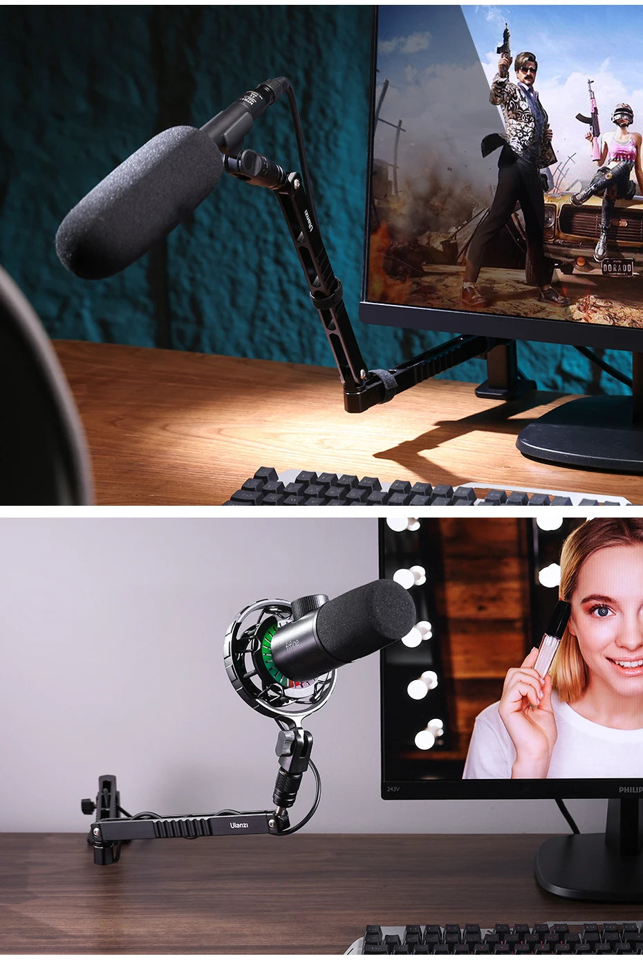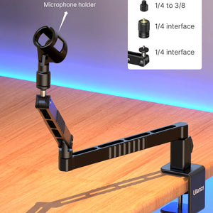 Ulanzi LS26 Desktop Low Microphone Stand 360° Adjustable 48cm Super Long Cross Arm with Microphone Holder 1/4'' 3/8'' 5/8'' Mount for Blue Yeti